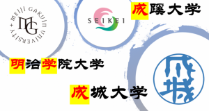 ~成成明學~日本中堅私立大學群【成成明學】是由成城大學(せいじょうだいがく、Seijo University)、成蹊大學(せいけいだいがく、Seikei University)、明治學院大學(めいじがくいんだいがく、Meiji Gakuin University)三所大學組成,其升學難易度基本在【MARCH】和【日東駒専】之間,【成成明學】的簡稱是為成城大學和成蹊大學的首字加上明治學院大學的首尾字合體的縮寫組成,讀成(せいせいめいがく)。?配圖:成城明學logo【成成明學】偏差值帶基本處于56左